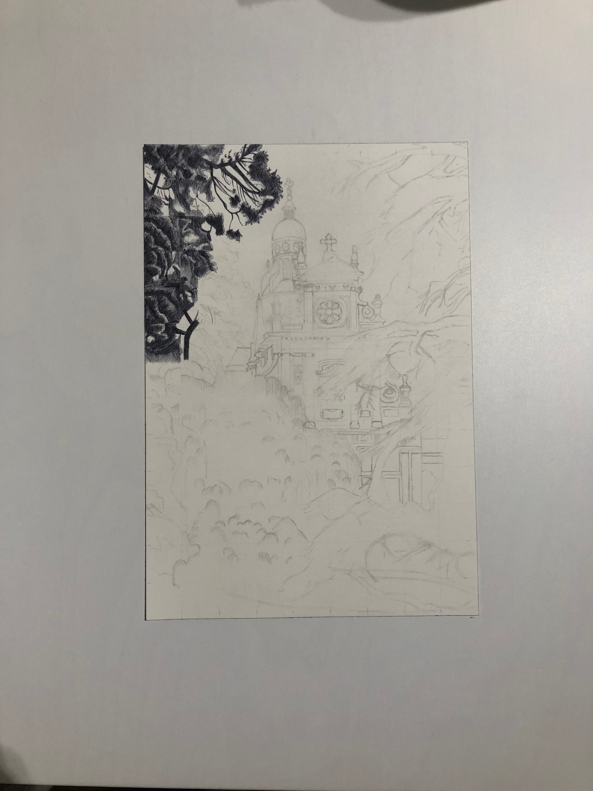 Finished the sketch, 1/23, now going back to rewatch the videos to revisit how to use the different mediums to work layering…