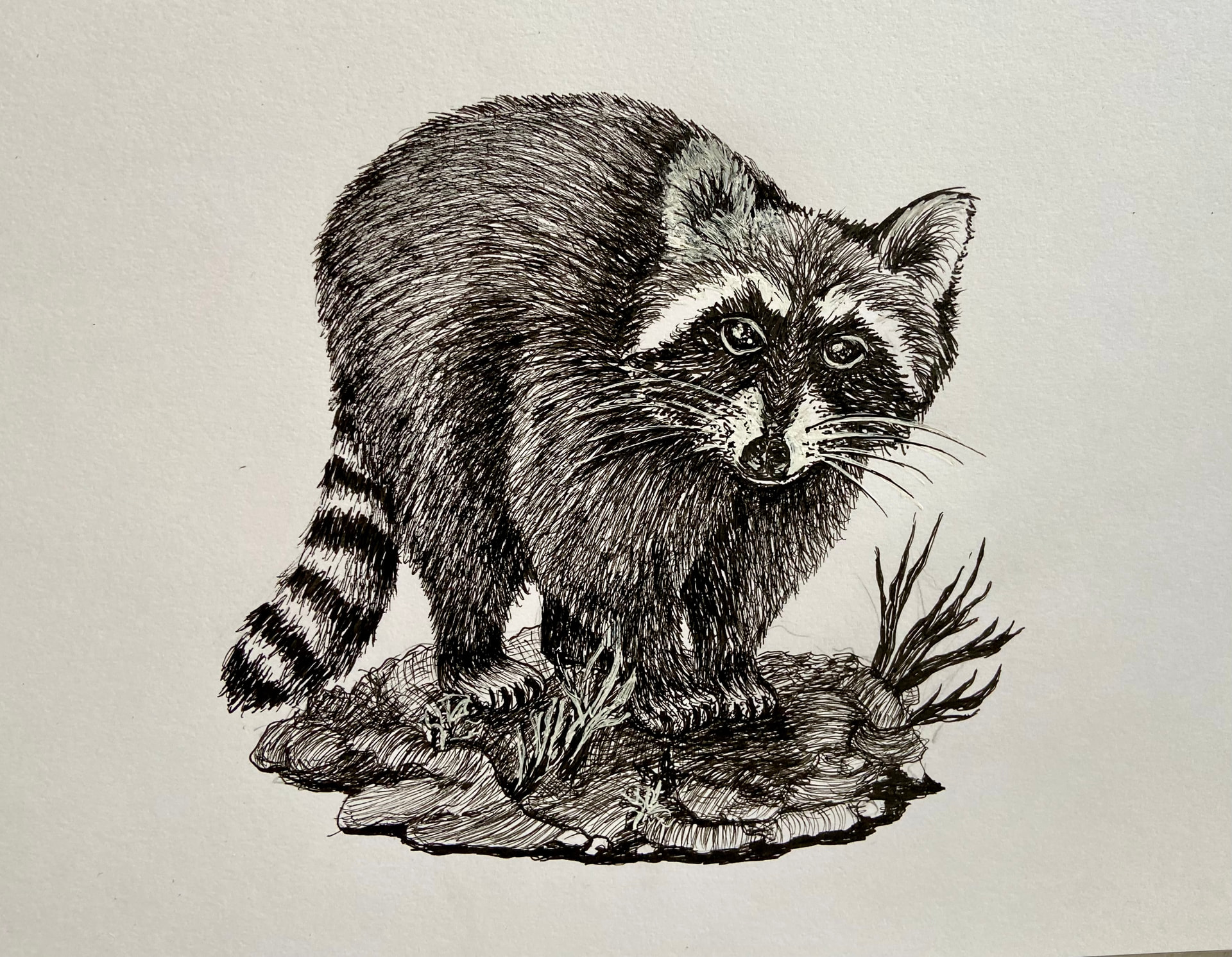 Finally finished the pen and ink raccoon. Not so afraid of that medium anymore. Love how the instructions were broken down into usable bites.
